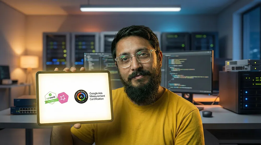 Ram Ashish maintains current certifications in Google’s core marketing platforms and holds elite Top Rated Plus status on Upwork, ensuring you work with a verified professional who stays current with industry best practices.